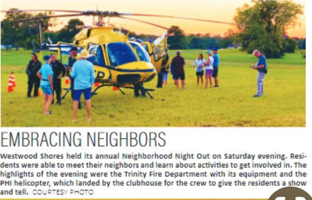 Westwood has two community garage sales a year, Spring and Fall. Any resident may have a sale. Be sure to call the POA Office, 936-594-3805 #4, to get your address on the community map which is handed out by the Access Gate Staff. Sales start no earlier than 8:00 am and must end by 5:00.