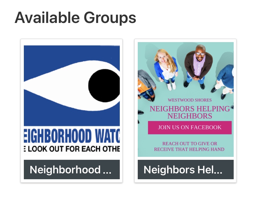 From the Home page, click anywhere in the group pictured under Westwood Shores Groups or from the top menu "Westwood Shores Groups" drop down listing to enter a group.